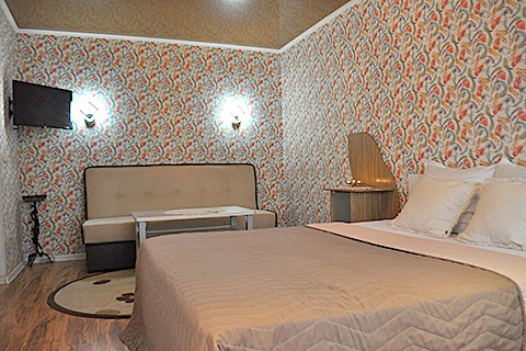 Зі спальних місць: кругле ліжко та односпальний диван.